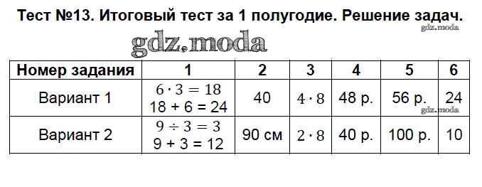 ГДЗ решение к заданию № 13 Математика 3 класс тесты Рудницкая В.Н. (к уч. Моро М.И.) Экзамен 2020 Часть 1, Часть 2 ФГОС бесплатно на гдз.мода!