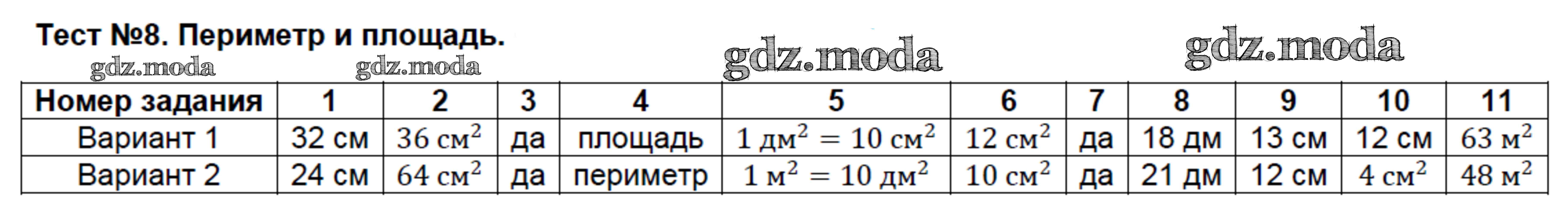 ГДЗ решение к заданию № 8 Математика 3 класс тесты Рудницкая В.Н. (к уч. Моро М.И.) Экзамен 2020 Часть 1, Часть 2 ФГОС бесплатно на гдз.мода!