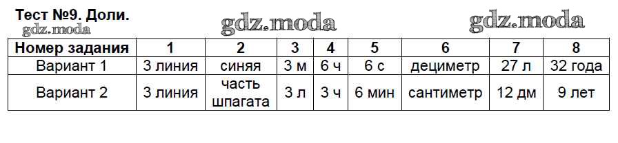 ГДЗ решение к заданию № 9 Математика 3 класс тесты Рудницкая В.Н. (к уч. Моро М.И.) Экзамен 2020 Часть 1, Часть 2 ФГОС бесплатно на гдз.мода!