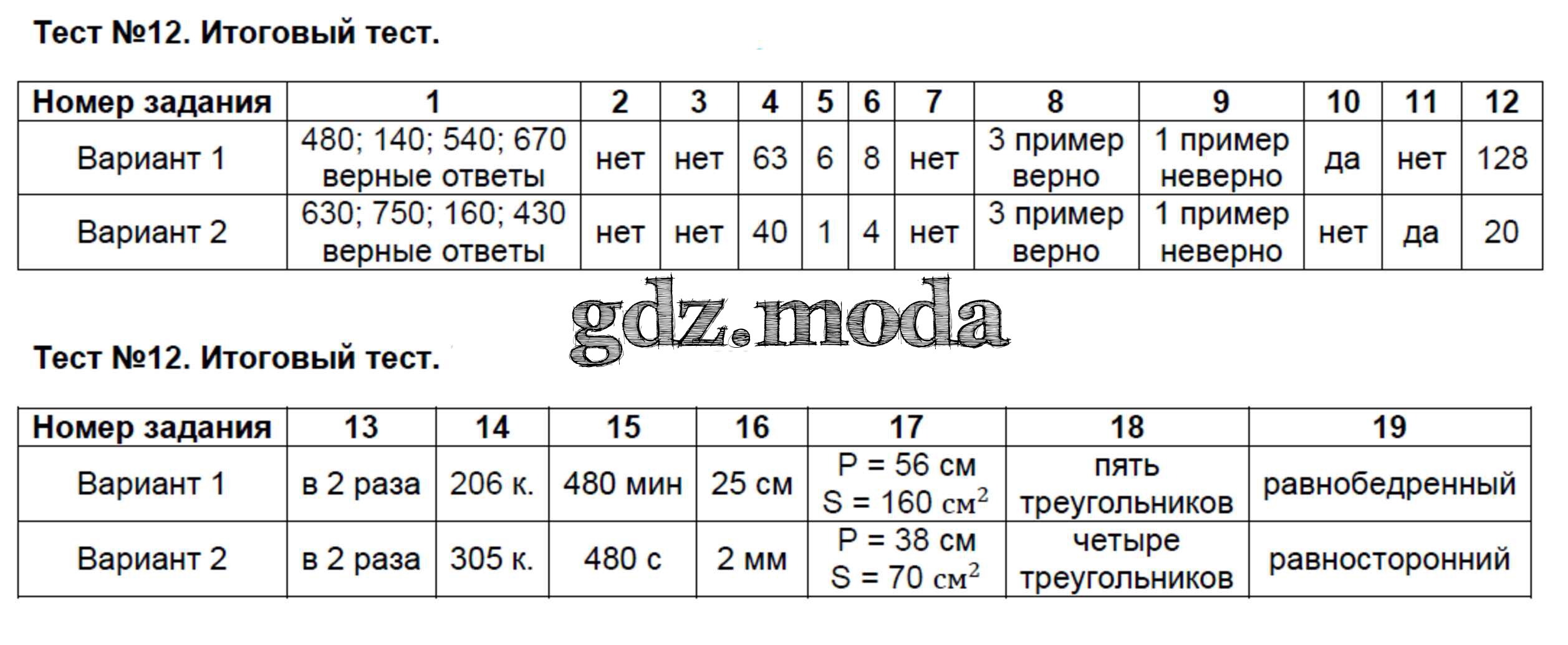 ГДЗ решение к заданию № 12 Математика 3 класс тесты Рудницкая В.Н. (к уч. Моро М.И.) Экзамен 2020 Часть 1, Часть 2 ФГОС бесплатно на гдз.мода!