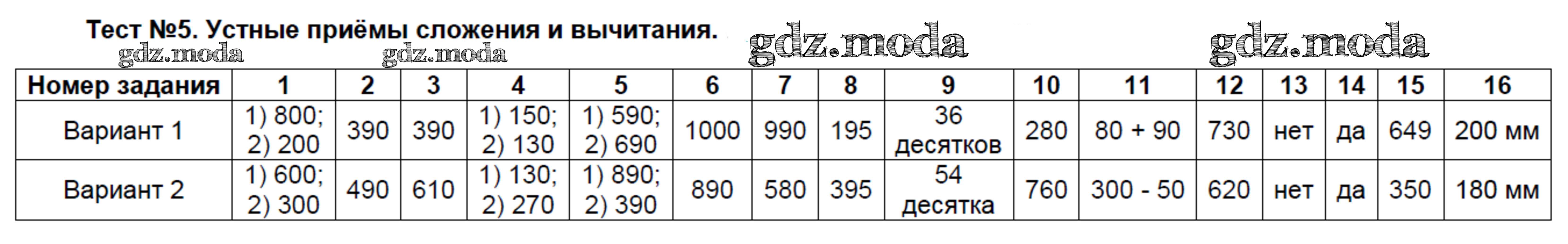 ГДЗ решение к заданию № 5 Математика 3 класс тесты Рудницкая В.Н. (к уч. Моро М.И.) Экзамен 2020 Часть 1, Часть 2 ФГОС бесплатно на гдз.мода!