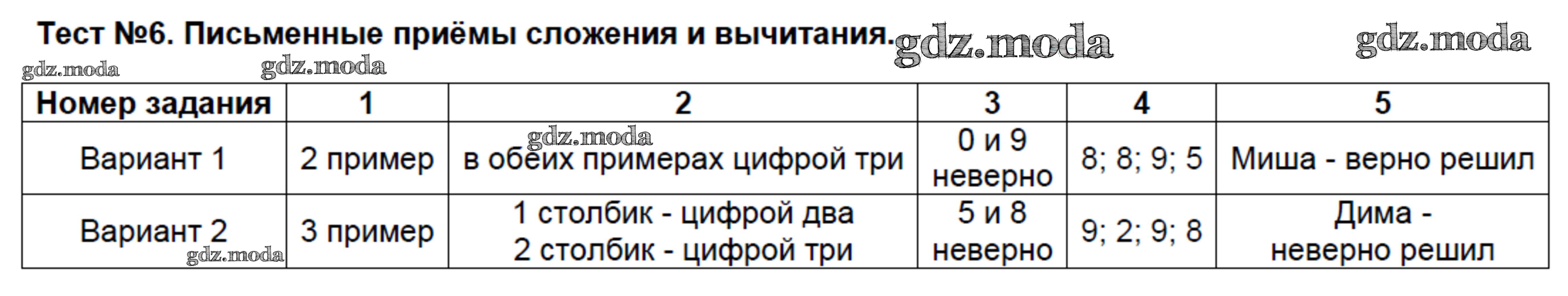 ГДЗ решение к заданию № 6 Математика 3 класс тесты Рудницкая В.Н. (к уч. Моро М.И.) Экзамен 2020 Часть 1, Часть 2 ФГОС бесплатно на гдз.мода!
