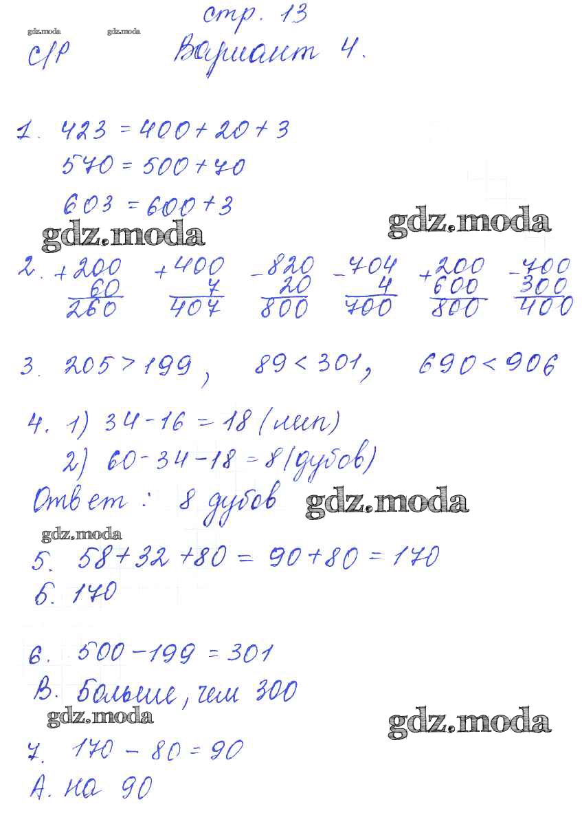 ГДЗ решение к заданию № 13 Математика 3 класс тесты и самостоятельные работы Нефёдова М.Г. Аст/Астрель 2017 ФГОС бесплатно на гдз.мода!