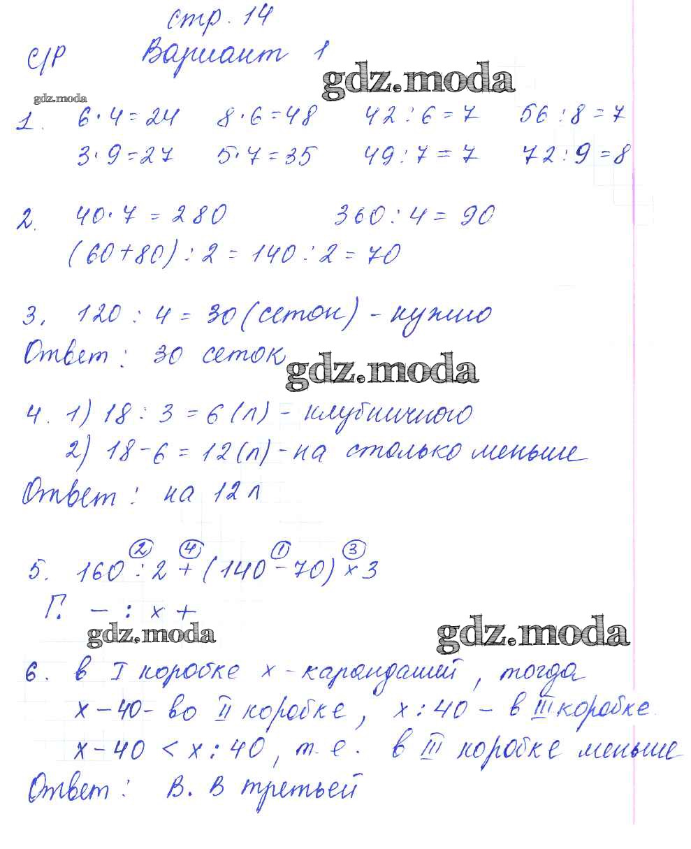ГДЗ решение к заданию № 14 Математика 3 класс тесты и самостоятельные работы Нефёдова М.Г. Аст/Астрель 2017 ФГОС бесплатно на гдз.мода!