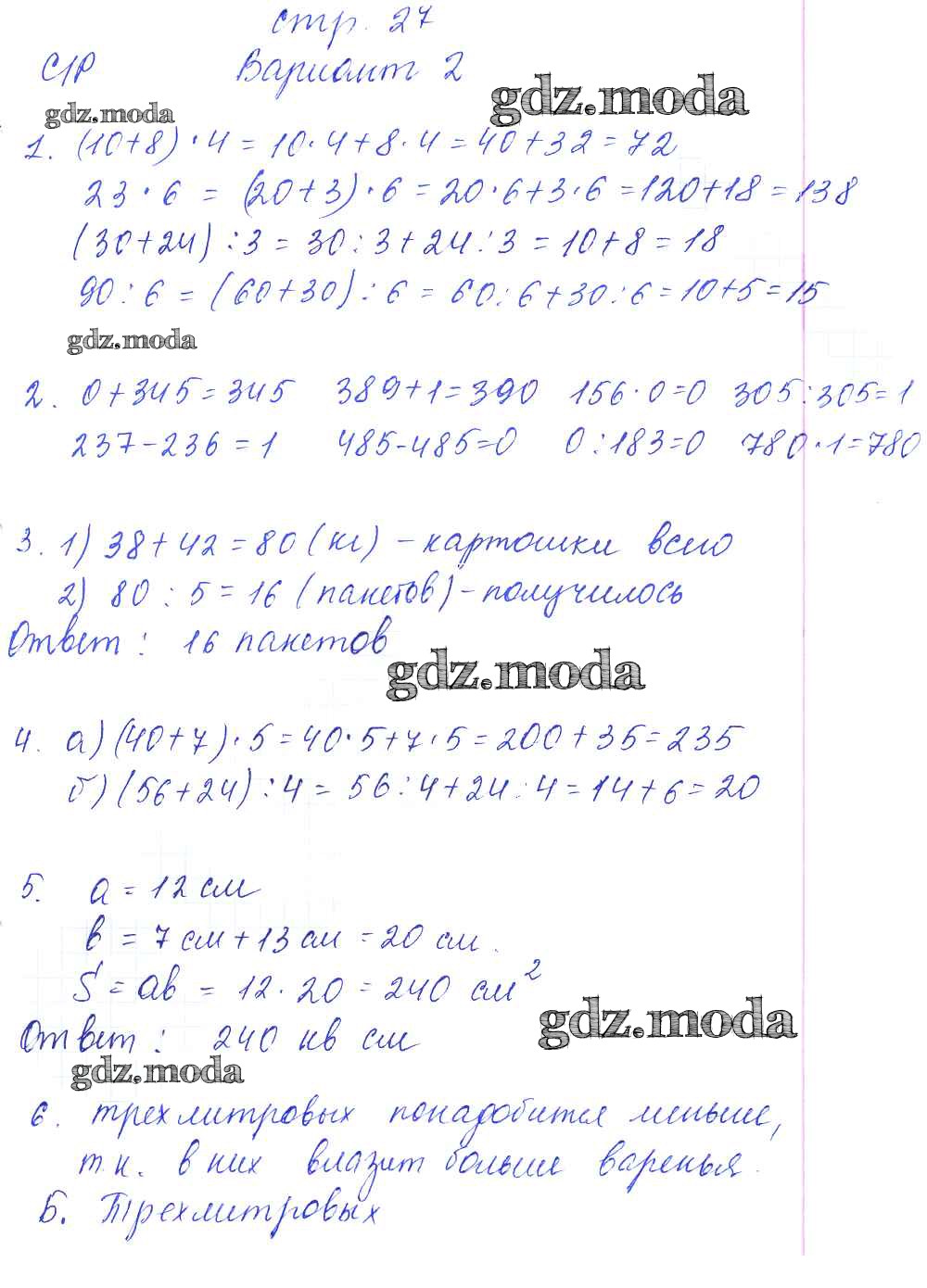 ГДЗ решение к заданию № 27 Математика 3 класс тесты и самостоятельные работы Нефёдова М.Г. Аст/Астрель 2017 ФГОС бесплатно на гдз.мода!