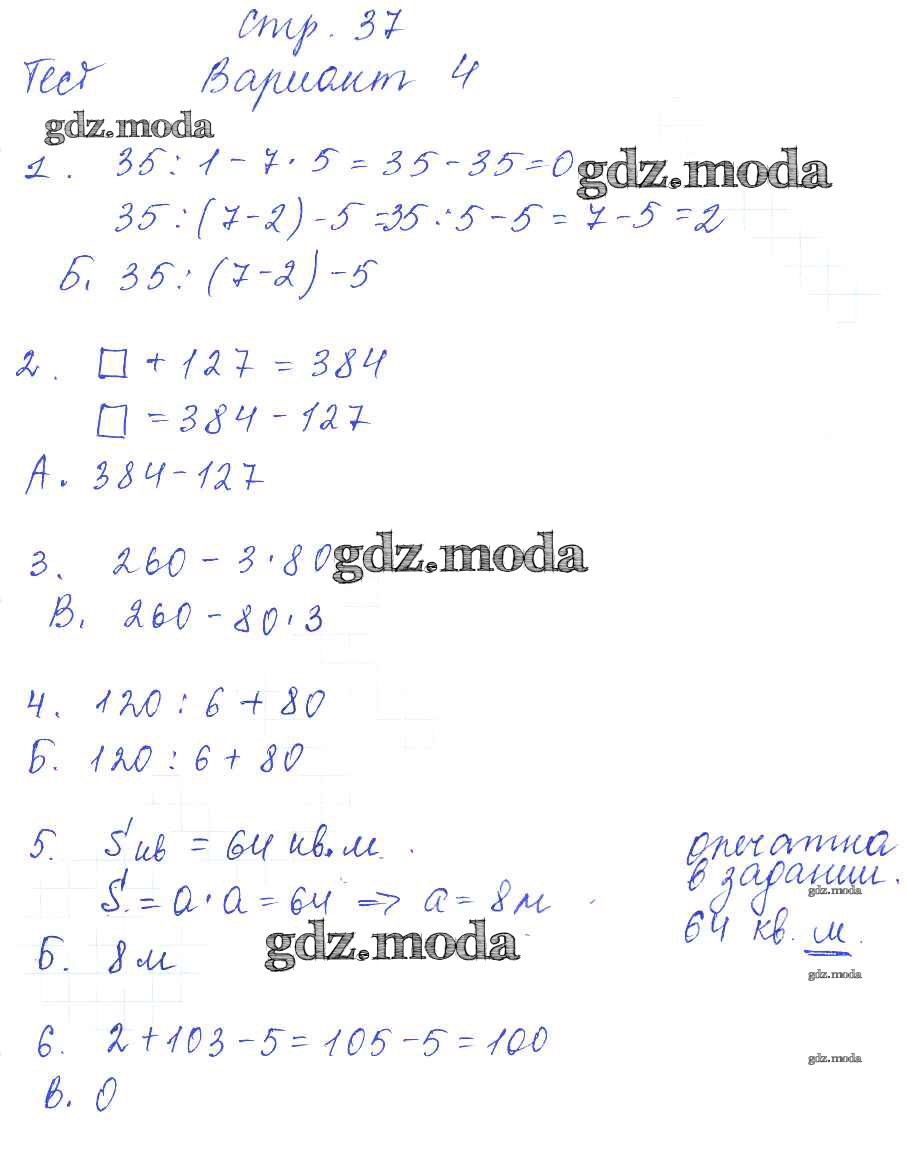 ГДЗ решение к заданию № 37 Математика 3 класс тесты и самостоятельные работы Нефёдова М.Г. Аст/Астрель 2017 ФГОС бесплатно на гдз.мода!
