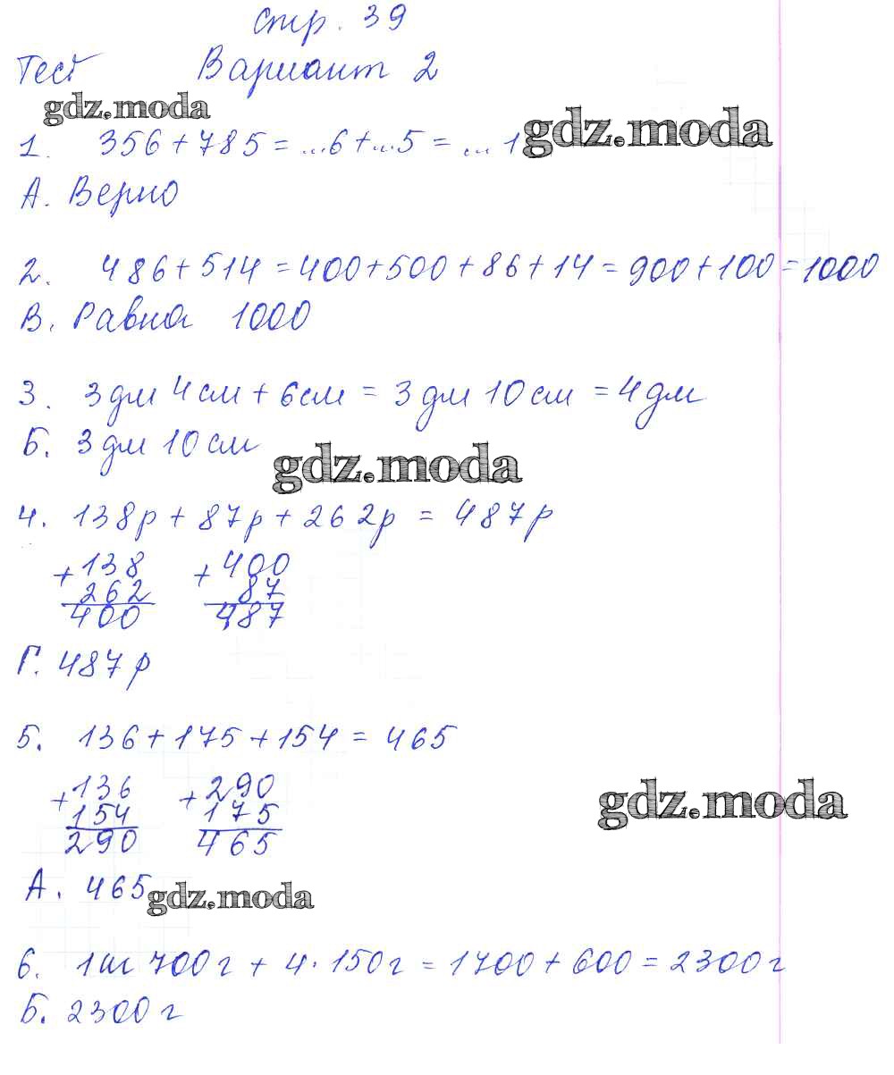 ГДЗ решение к заданию № 39 Математика 3 класс тесты и самостоятельные работы Нефёдова М.Г. Аст/Астрель 2017 ФГОС бесплатно на гдз.мода!