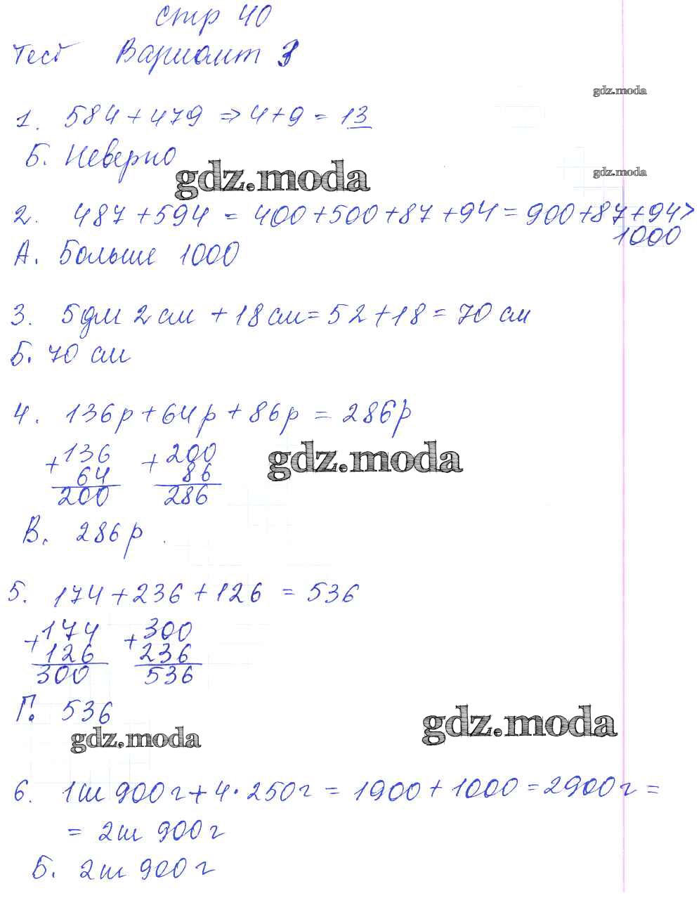 ГДЗ решение к заданию № 40 Математика 3 класс тесты и самостоятельные работы Нефёдова М.Г. Аст/Астрель 2017 ФГОС бесплатно на гдз.мода!