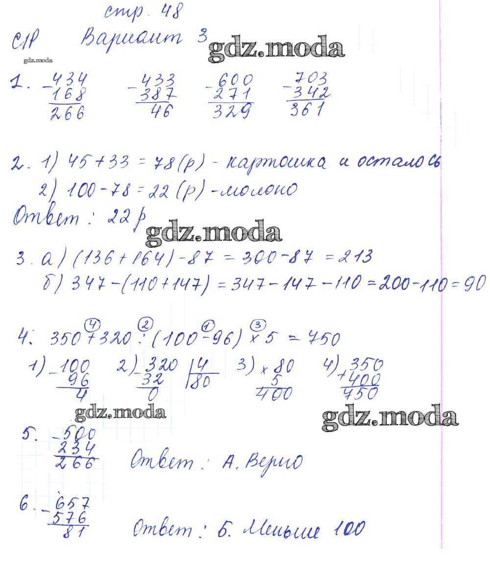 ГДЗ решение к заданию № 48 Математика 3 класс тесты и самостоятельные работы Нефёдова М.Г. Аст/Астрель 2017 ФГОС бесплатно на гдз.мода!