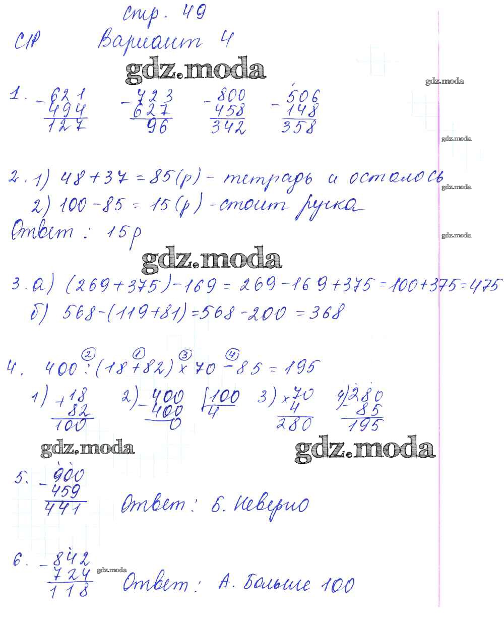 ГДЗ решение к заданию № 49 Математика 3 класс тесты и самостоятельные работы Нефёдова М.Г. Аст/Астрель 2017 ФГОС бесплатно на гдз.мода!