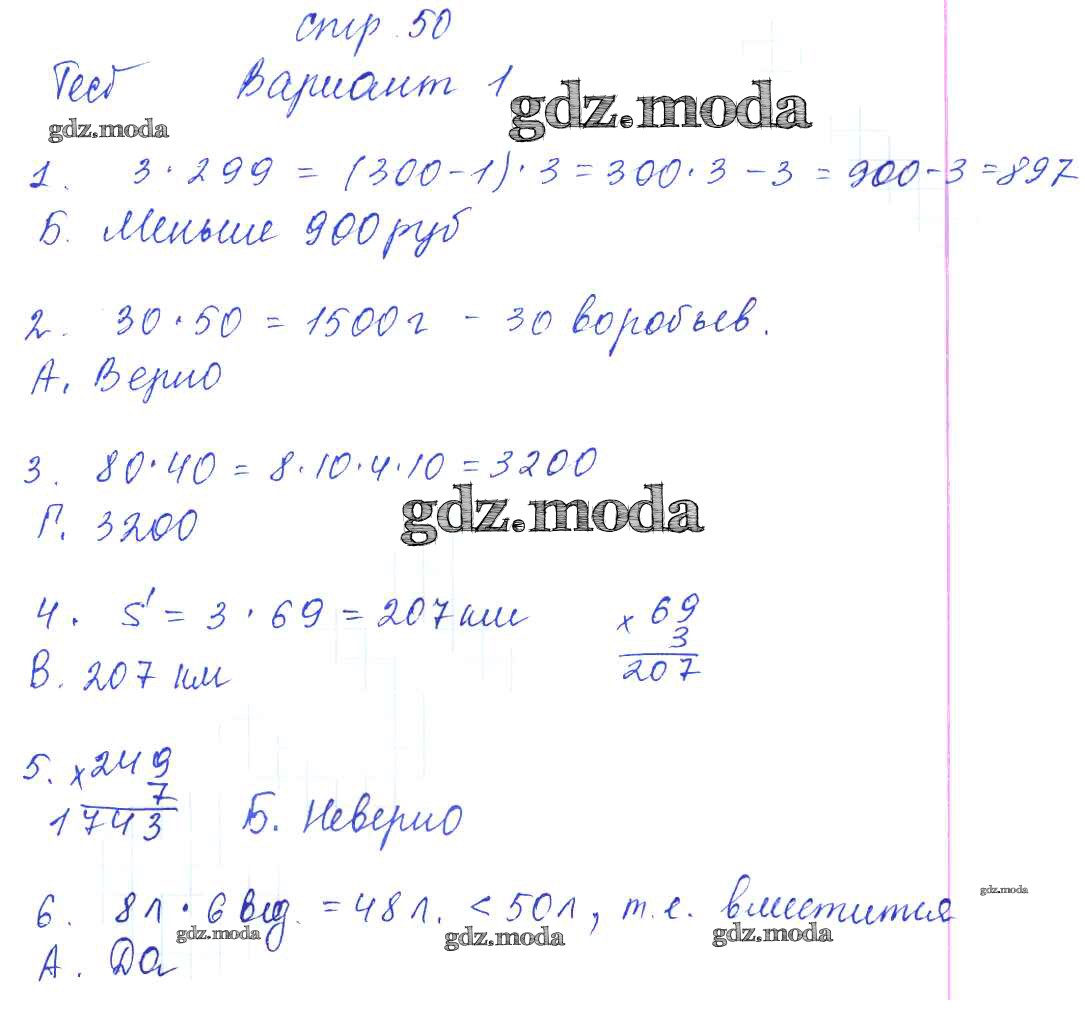 ГДЗ решение к заданию № 50 Математика 3 класс тесты и самостоятельные работы Нефёдова М.Г. Аст/Астрель 2017 ФГОС бесплатно на гдз.мода!