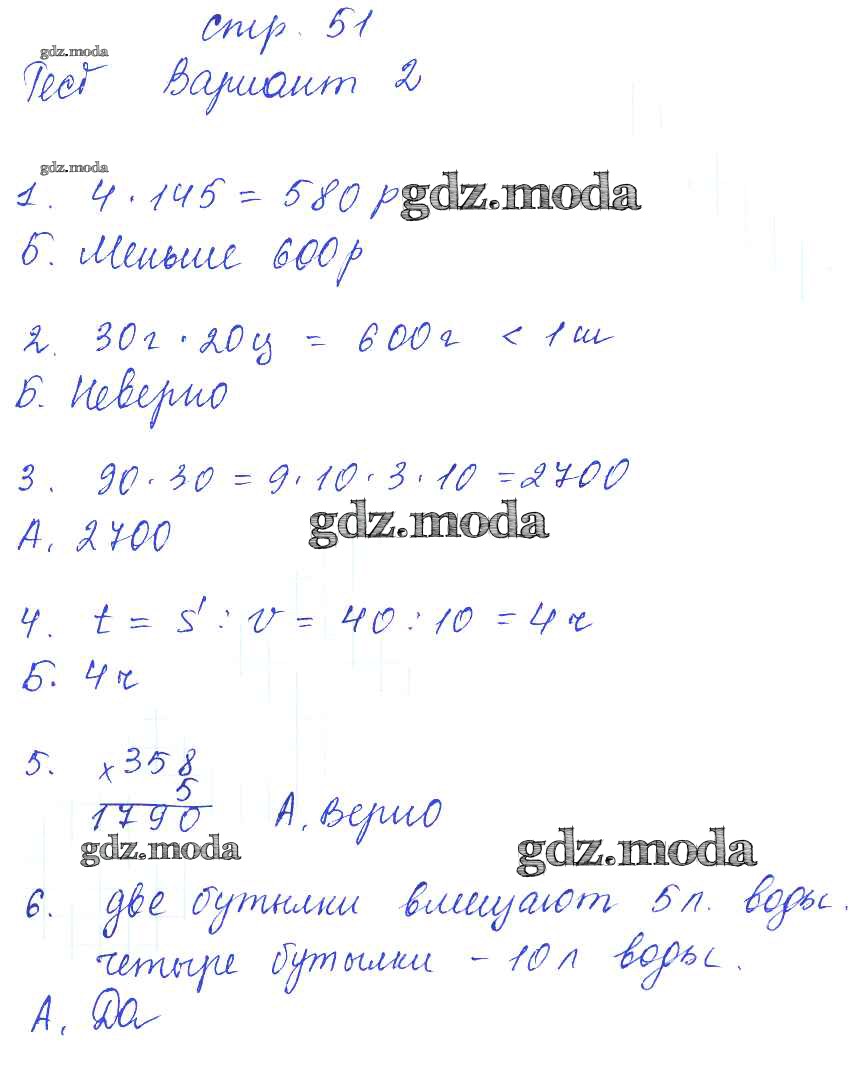 ГДЗ решение к заданию № 51 Математика 3 класс тесты и самостоятельные работы Нефёдова М.Г. Аст/Астрель 2017 ФГОС бесплатно на гдз.мода!
