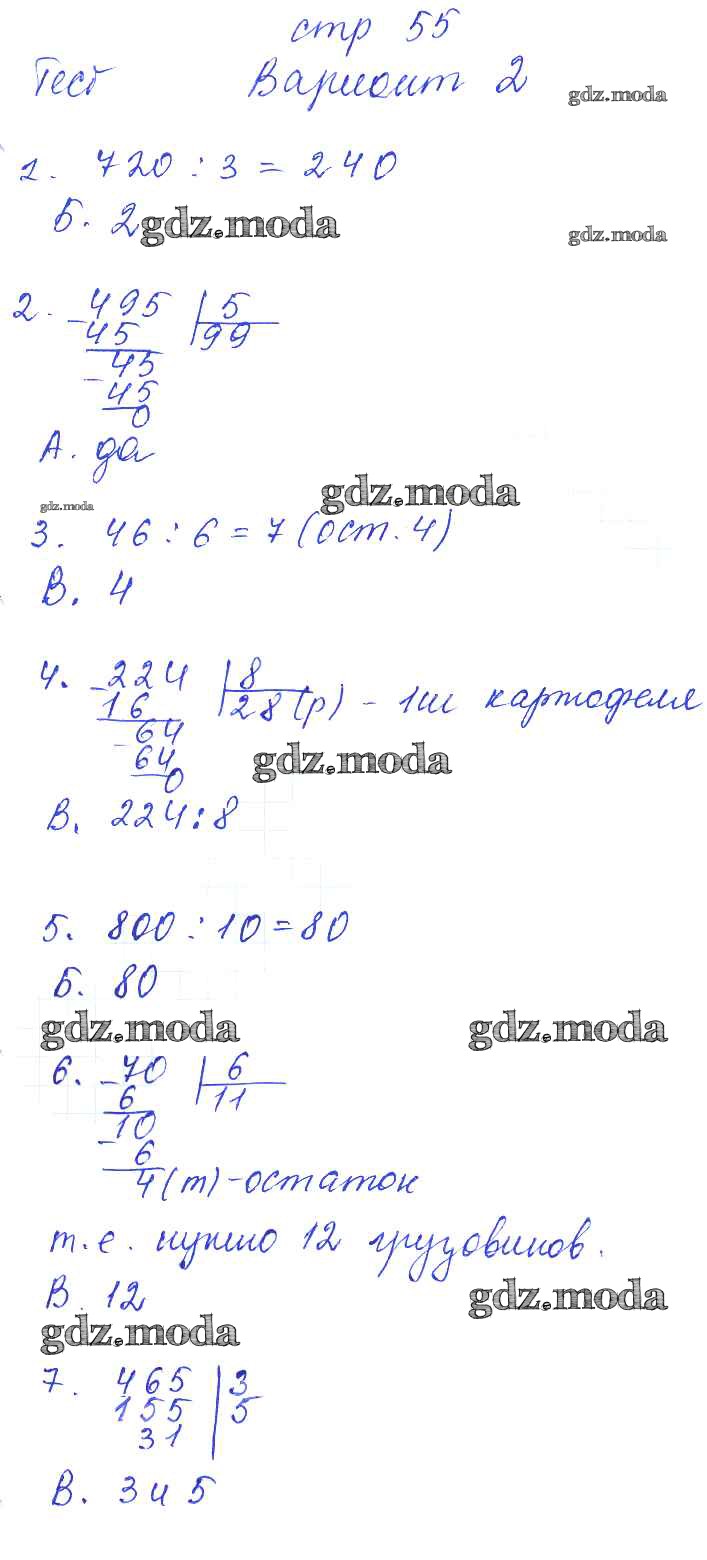 ГДЗ решение к заданию № 55 Математика 3 класс тесты и самостоятельные работы Нефёдова М.Г. Аст/Астрель 2017 ФГОС бесплатно на гдз.мода!