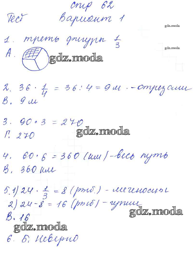ГДЗ решение к заданию № 62 Математика 3 класс тесты и самостоятельные работы Нефёдова М.Г. Аст/Астрель 2017 ФГОС бесплатно на гдз.мода!
