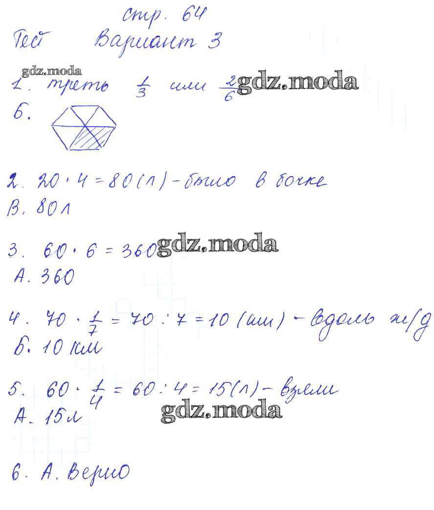 ГДЗ решение к заданию № 64 Математика 3 класс тесты и самостоятельные работы Нефёдова М.Г. Аст/Астрель 2017 ФГОС бесплатно на гдз.мода!