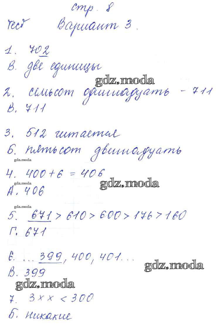 ГДЗ решение к заданию № 8 Математика 3 класс тесты и самостоятельные работы Нефёдова М.Г. Аст/Астрель 2017 ФГОС бесплатно на гдз.мода!