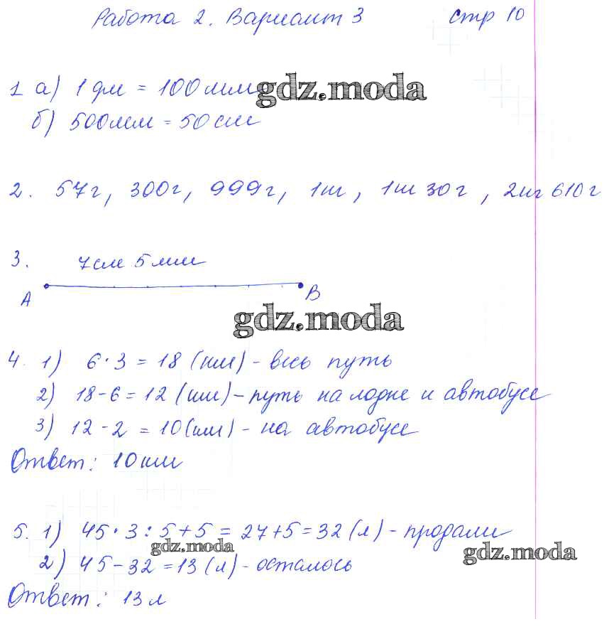 ГДЗ решение к заданию № 10 Математика 3 класс тетрадь для контрольных работ Рудницкая В.Н. Вентана-граф 2017 ФГОС бесплатно на гдз.мода!