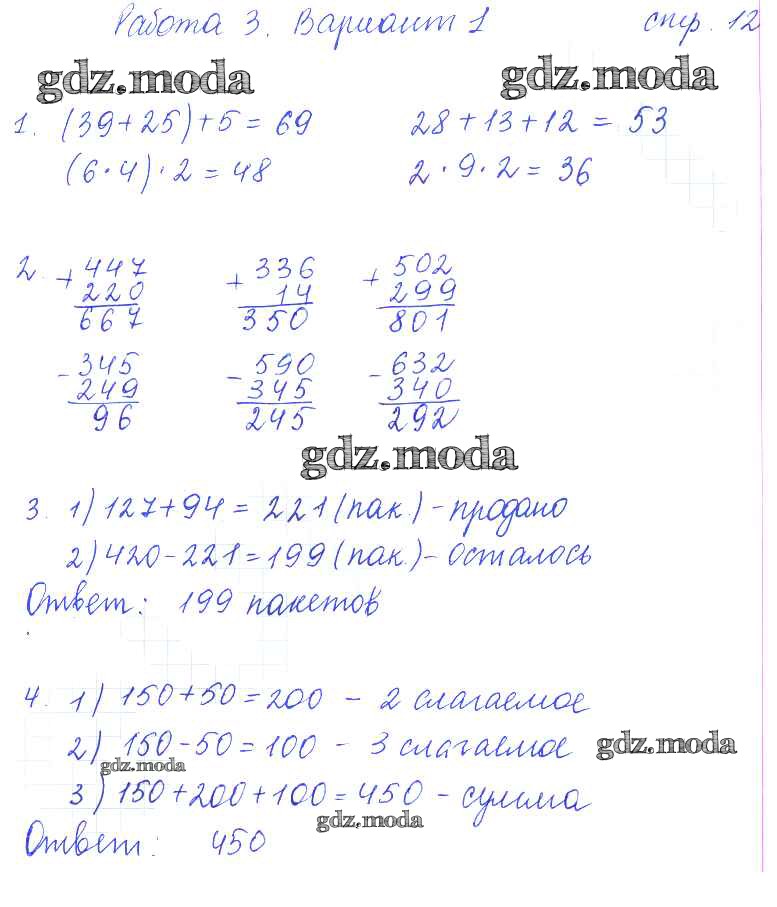 ГДЗ решение к заданию № 12 Математика 3 класс тетрадь для контрольных работ Рудницкая В.Н. Вентана-граф 2017 ФГОС бесплатно на гдз.мода!