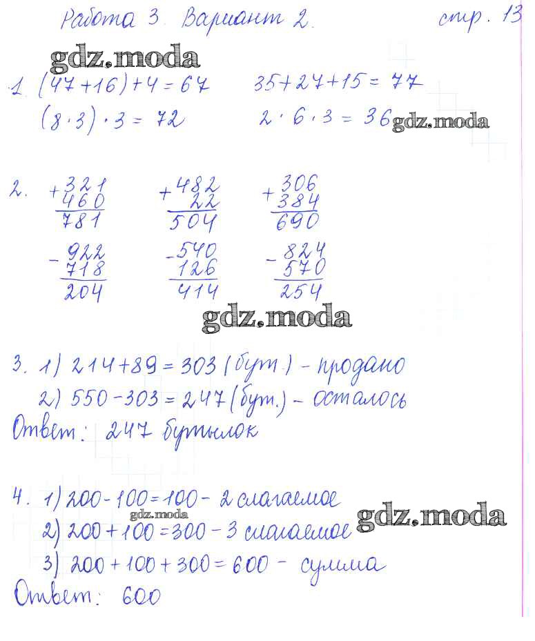 ГДЗ решение к заданию № 13 Математика 3 класс тетрадь для контрольных работ Рудницкая В.Н. Вентана-граф 2017 ФГОС бесплатно на гдз.мода!