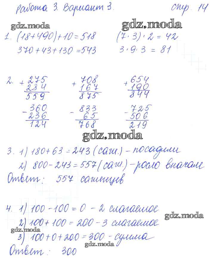ГДЗ решение к заданию № 14 Математика 3 класс тетрадь для контрольных работ Рудницкая В.Н. Вентана-граф 2017 ФГОС бесплатно на гдз.мода!