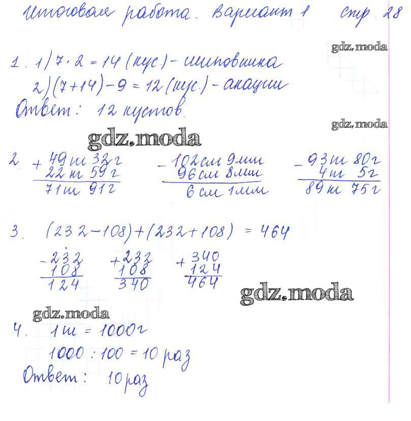 ГДЗ решение к заданию № 28 Математика 3 класс тетрадь для контрольных работ Рудницкая В.Н. Вентана-граф 2017 ФГОС бесплатно на гдз.мода!