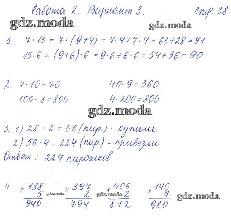 ГДЗ решение к заданию № 38 Математика 3 класс тетрадь для контрольных работ Рудницкая В.Н. Вентана-граф 2017 ФГОС бесплатно на гдз.мода!