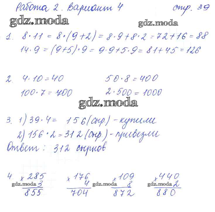 ГДЗ решение к заданию № 39 Математика 3 класс тетрадь для контрольных работ Рудницкая В.Н. Вентана-граф 2017 ФГОС бесплатно на гдз.мода!