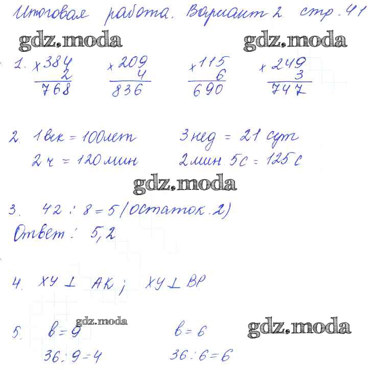 ГДЗ решение к заданию № 41 Математика 3 класс тетрадь для контрольных работ Рудницкая В.Н. Вентана-граф 2017 ФГОС бесплатно на гдз.мода!