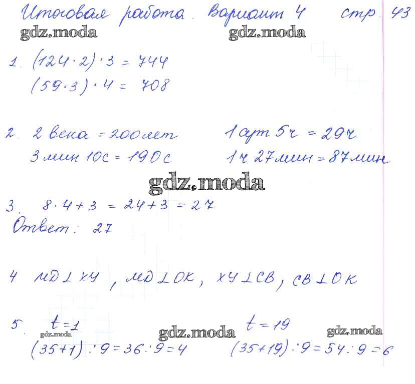 ГДЗ решение к заданию № 43 Математика 3 класс тетрадь для контрольных работ Рудницкая В.Н. Вентана-граф 2017 ФГОС бесплатно на гдз.мода!