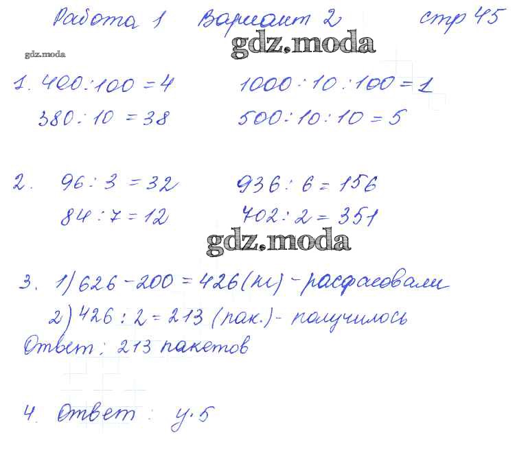 ГДЗ решение к заданию № 45 Математика 3 класс тетрадь для контрольных работ Рудницкая В.Н. Вентана-граф 2017 ФГОС бесплатно на гдз.мода!