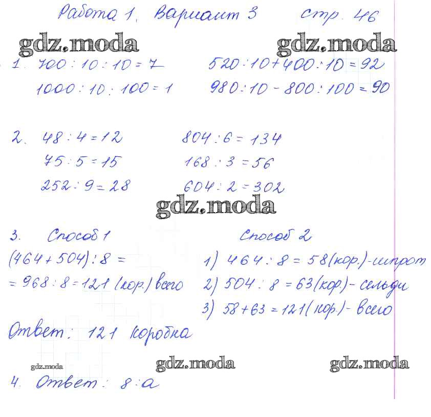 ГДЗ решение к заданию № 46 Математика 3 класс тетрадь для контрольных работ Рудницкая В.Н. Вентана-граф 2017 ФГОС бесплатно на гдз.мода!
