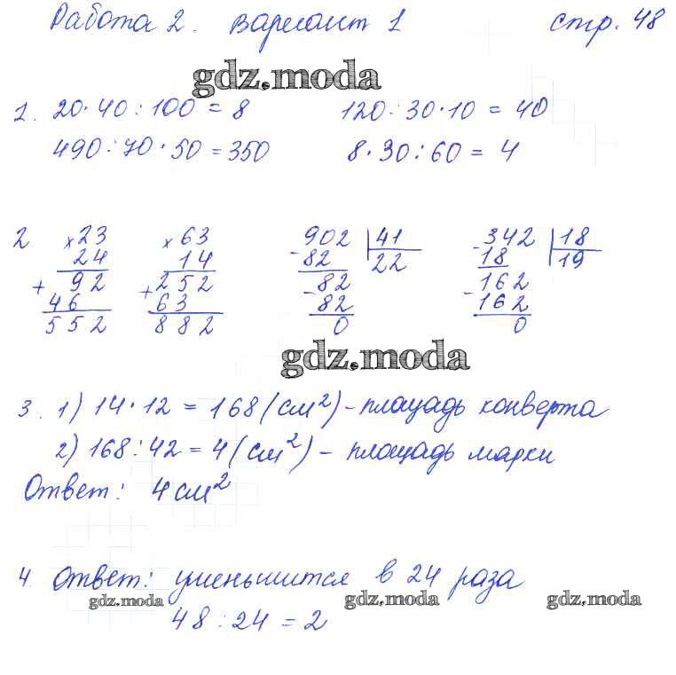 ГДЗ решение к заданию № 48 Математика 3 класс тетрадь для контрольных работ Рудницкая В.Н. Вентана-граф 2017 ФГОС бесплатно на гдз.мода!