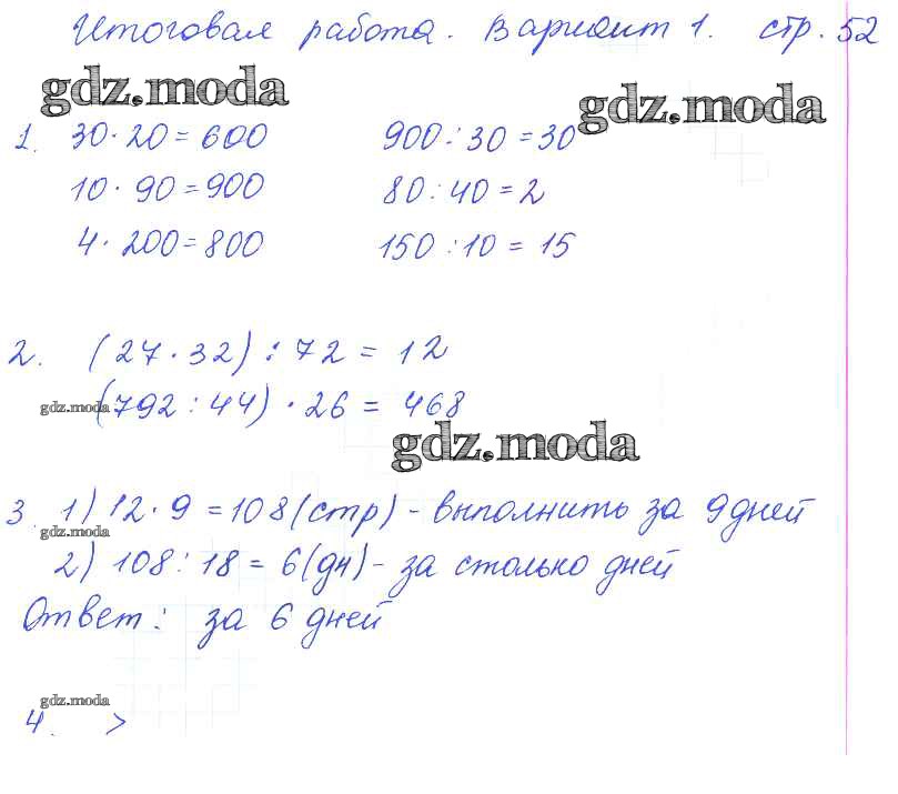 ГДЗ решение к заданию № 52 Математика 3 класс тетрадь для контрольных работ Рудницкая В.Н. Вентана-граф 2017 ФГОС бесплатно на гдз.мода!