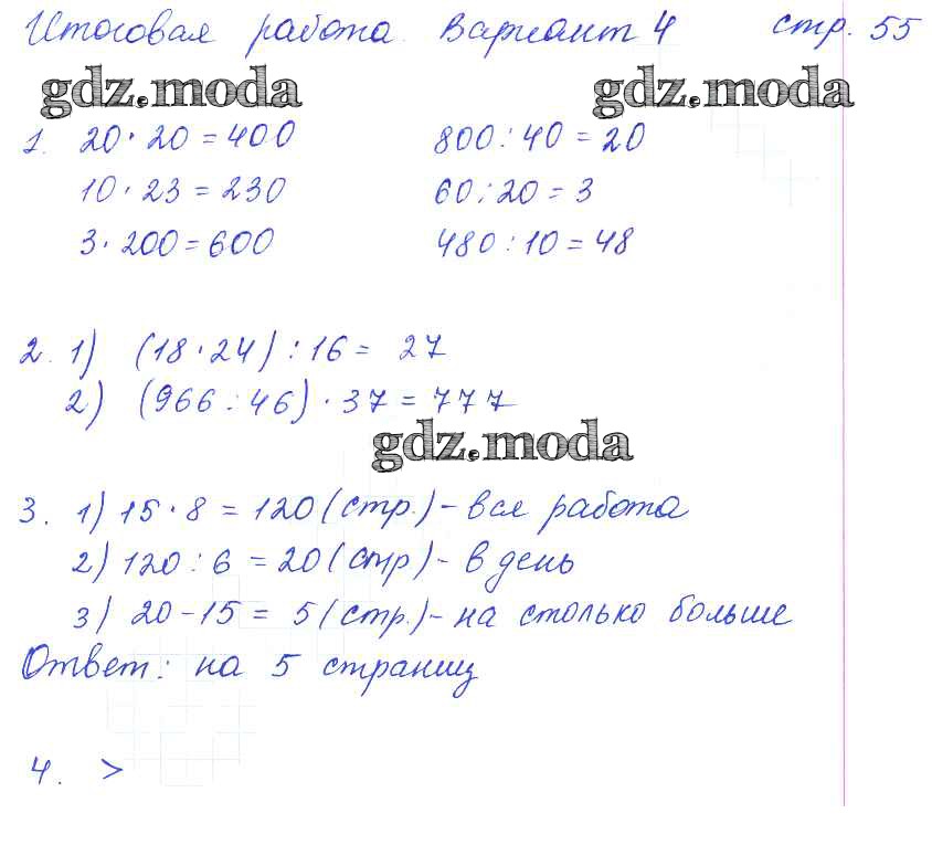 ГДЗ решение к заданию № 55 Математика 3 класс тетрадь для контрольных работ Рудницкая В.Н. Вентана-граф 2017 ФГОС бесплатно на гдз.мода!