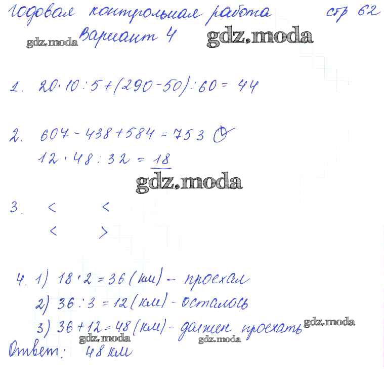 ГДЗ решение к заданию № 62 Математика 3 класс тетрадь для контрольных работ Рудницкая В.Н. Вентана-граф 2017 ФГОС бесплатно на гдз.мода!