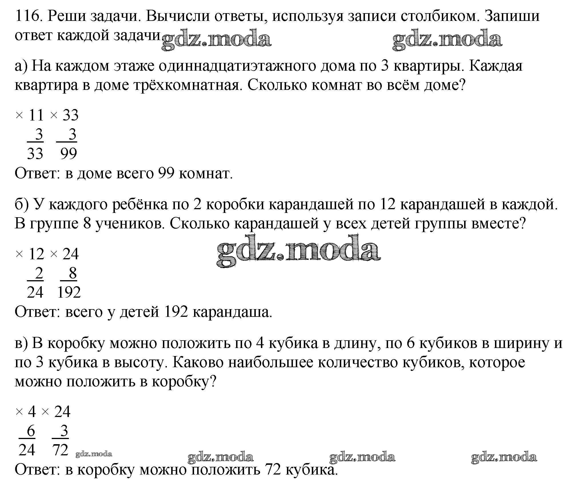 ОТВЕТ на задание № 116 Тетрадь для самостоятельной работы по Математике 3 класс Захарова Перспективная начальная школа
