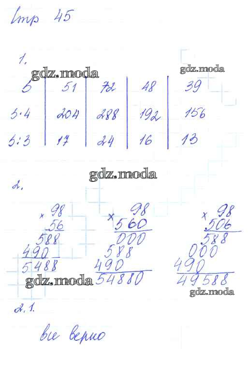 ГДЗ решение к заданию № 45 Математика 3 класс тетрадь для самостоятельной работы Чуракова Р.Г. Академкнига 2020 ФГОС бесплатно на гдз.мода!