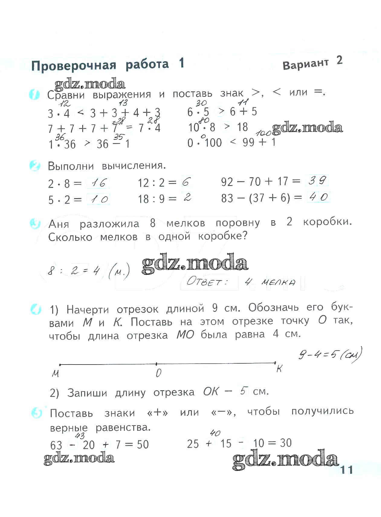 ОТВЕТ на задание № 11 Проверочные работы по Математике 3 класс Волкова Школа России
