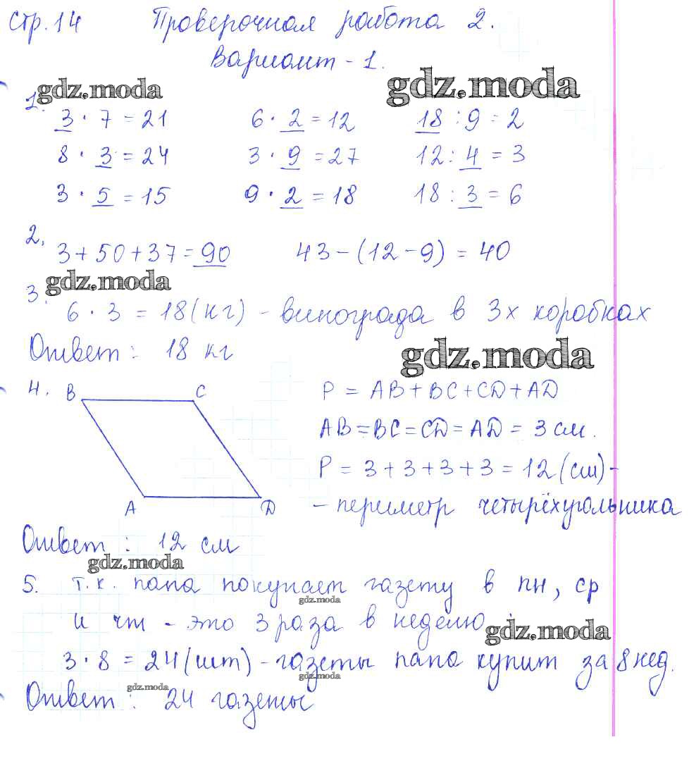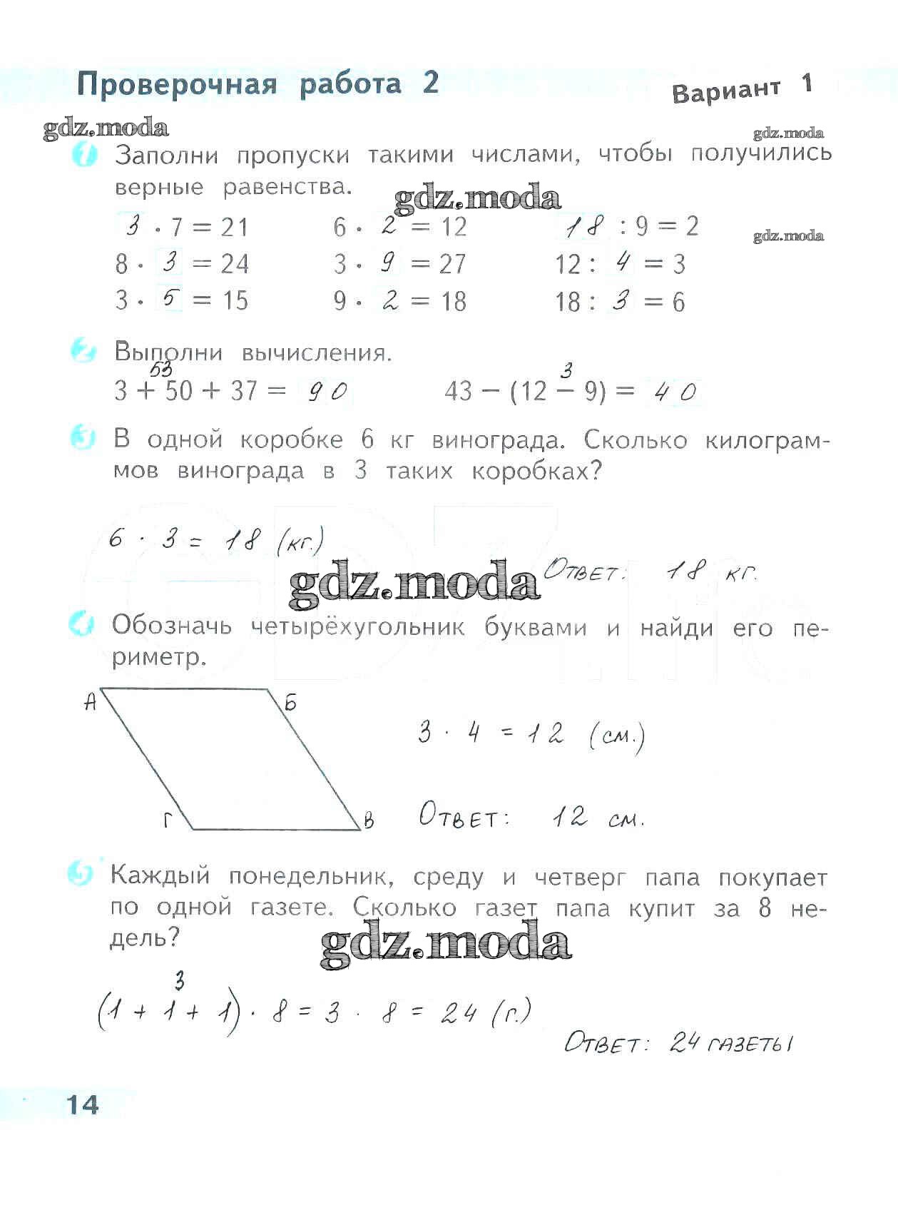 ОТВЕТ на задание № 14 Проверочные работы по Математике 3 класс Волкова Школа России