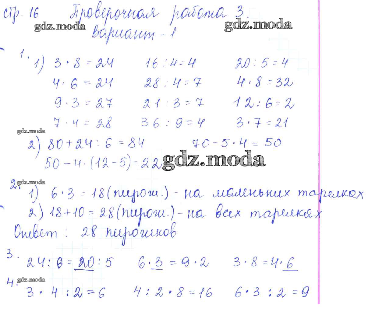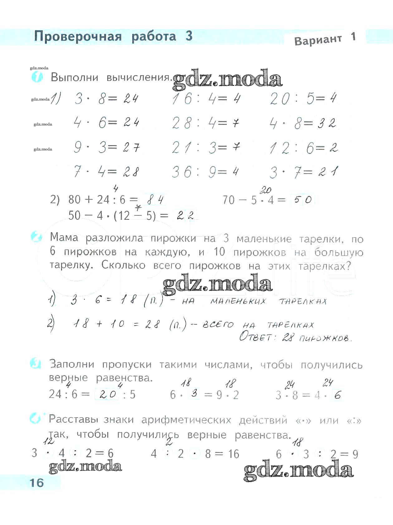 ОТВЕТ на задание № 16 Проверочные работы по Математике 3 класс Волкова Школа России