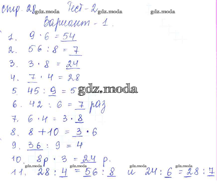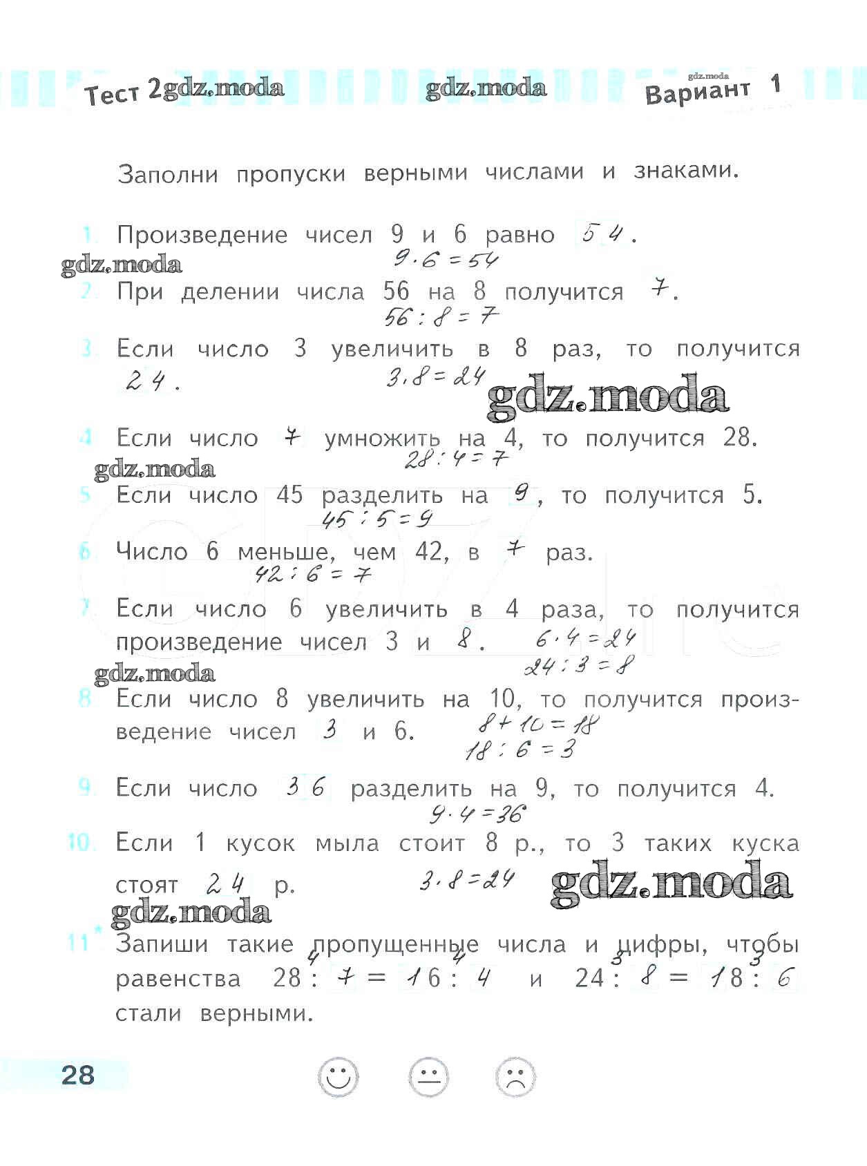 ОТВЕТ на задание № 28 Проверочные работы по Математике 3 класс Волкова Школа России