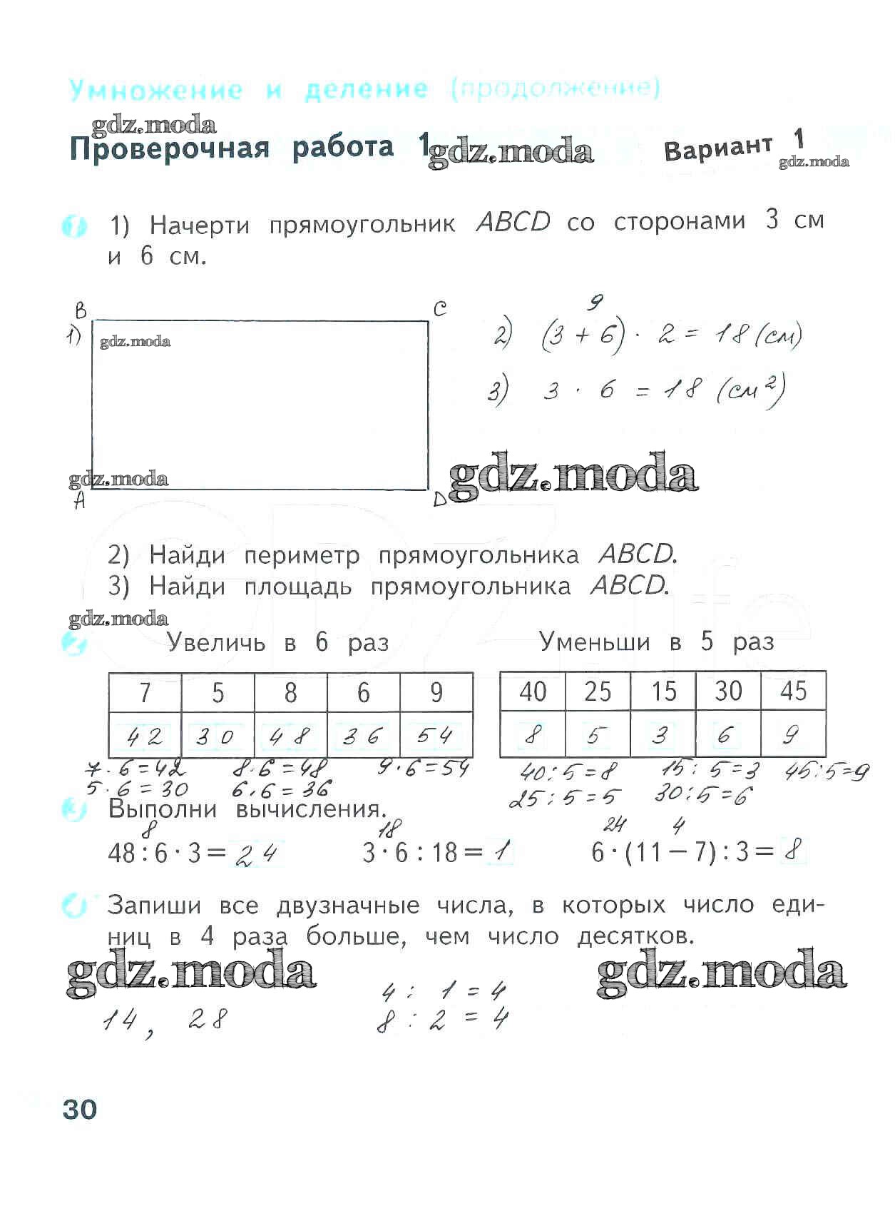 ОТВЕТ на задание № 30 Проверочные работы по Математике 3 класс Волкова Школа России