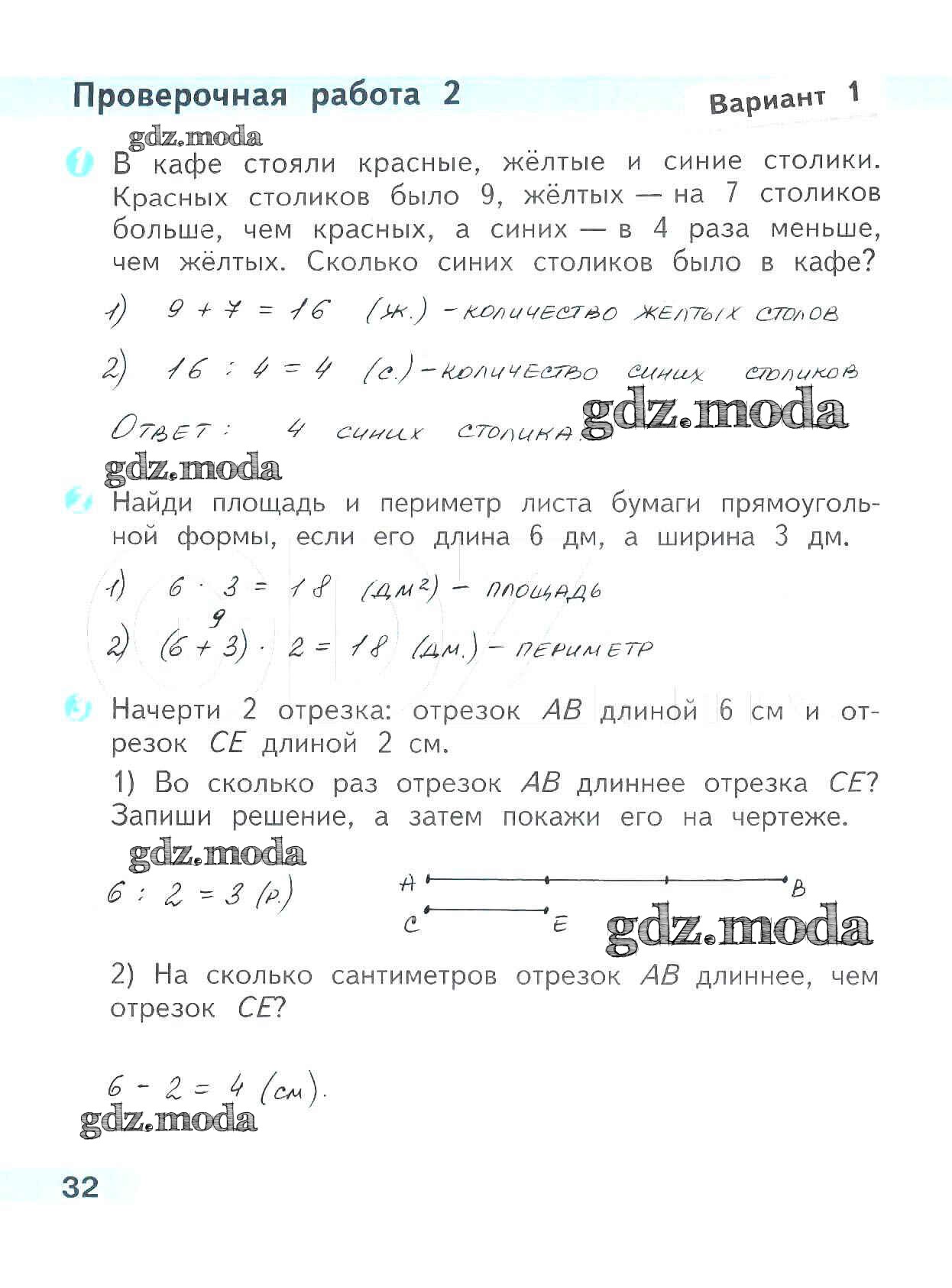 ОТВЕТ на задание № 32 Проверочные работы по Математике 3 класс Волкова Школа России