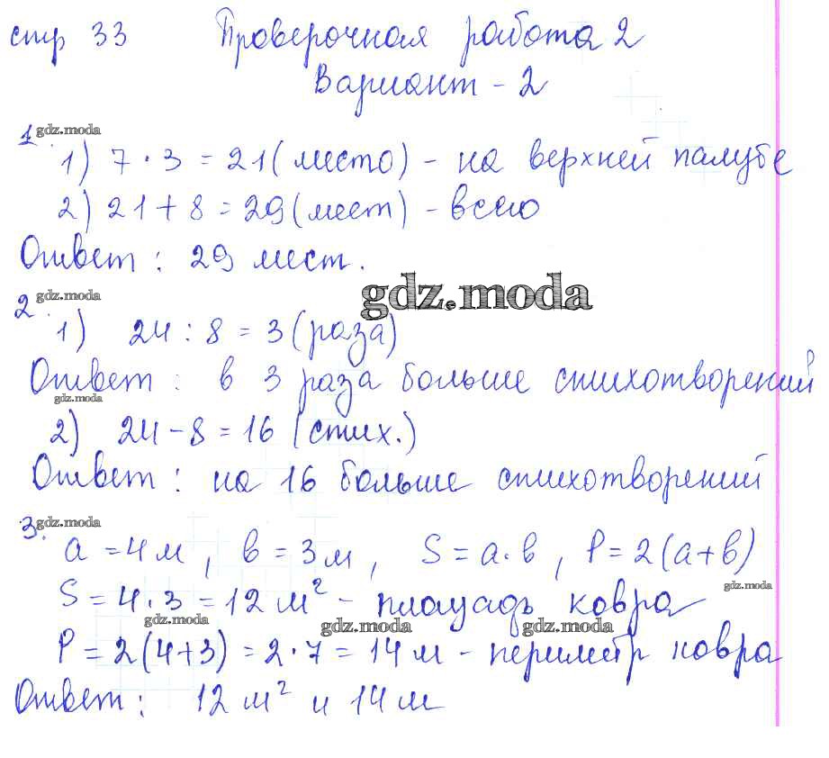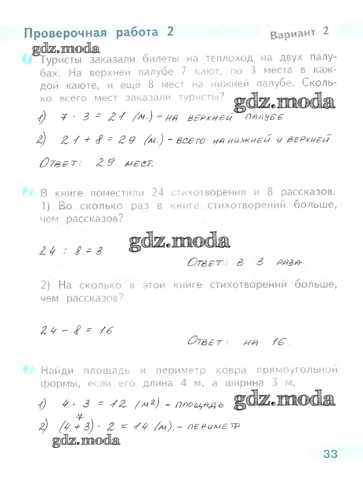 ОТВЕТ на задание № 33 Проверочные работы по Математике 3 класс Волкова Школа России