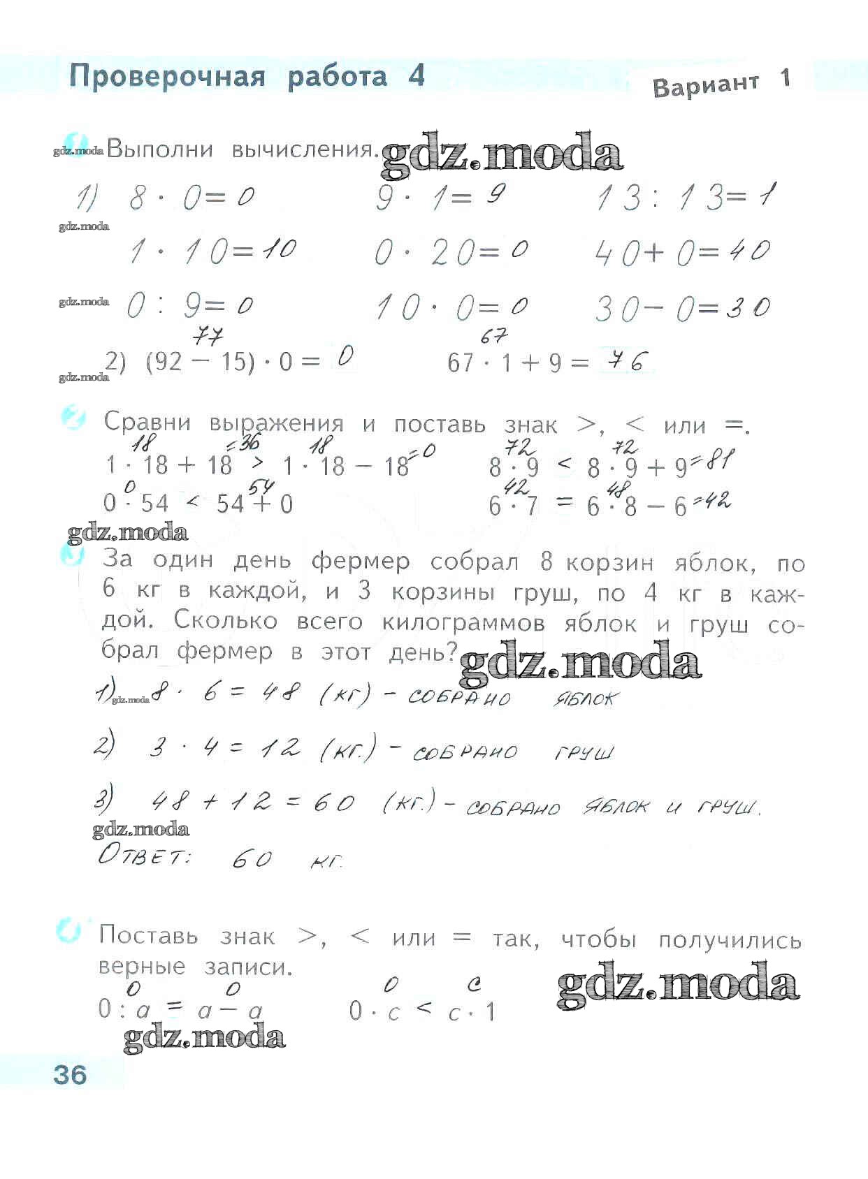 ОТВЕТ на задание № 36 Проверочные работы по Математике 3 класс Волкова Школа России