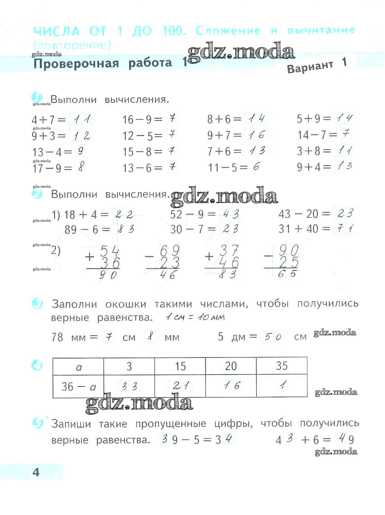 ОТВЕТ на задание № 4 Проверочные работы по Математике 3 класс Волкова Школа России