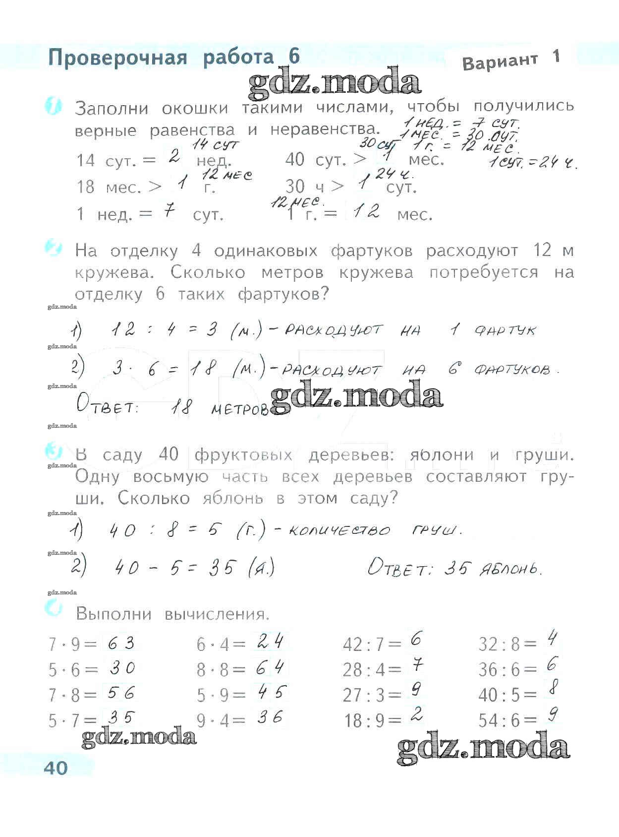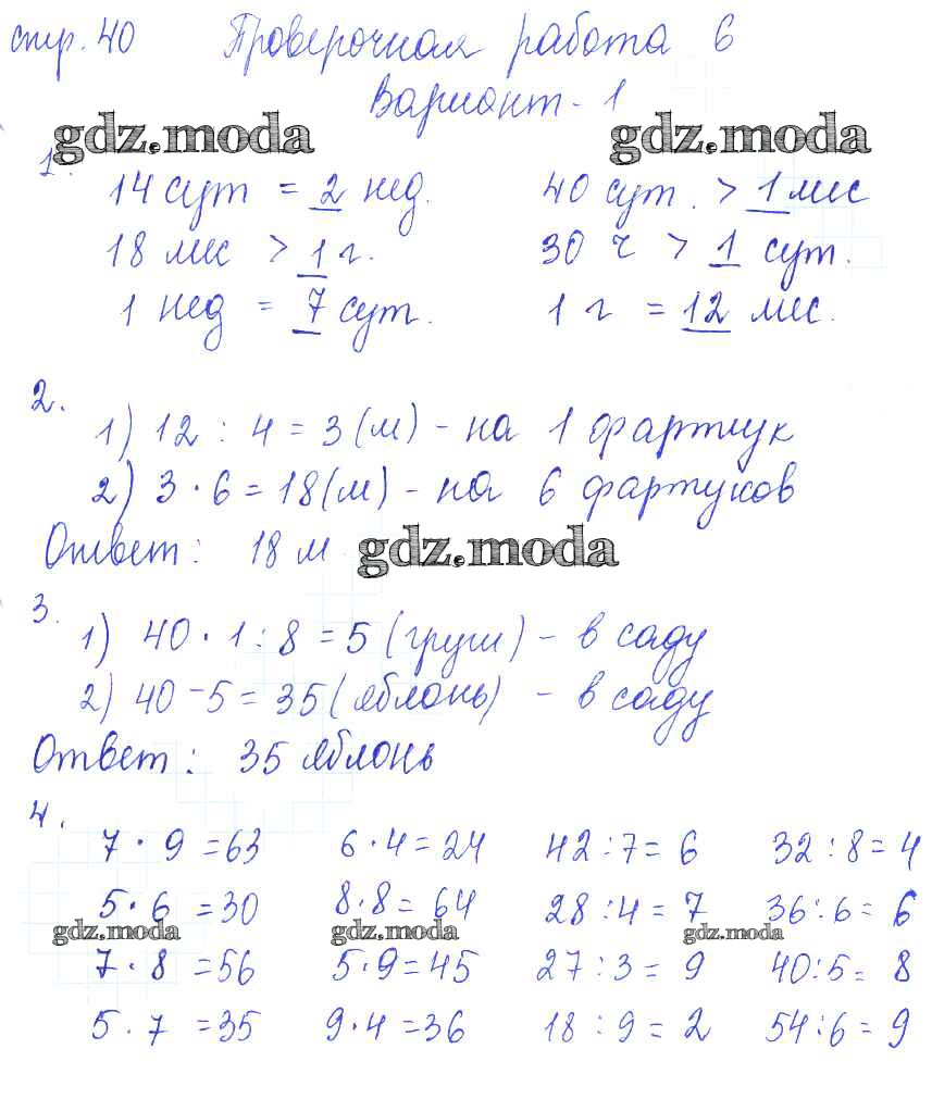 ОТВЕТ на задание № 40 Проверочные работы по Математике 3 класс Волкова Школа России