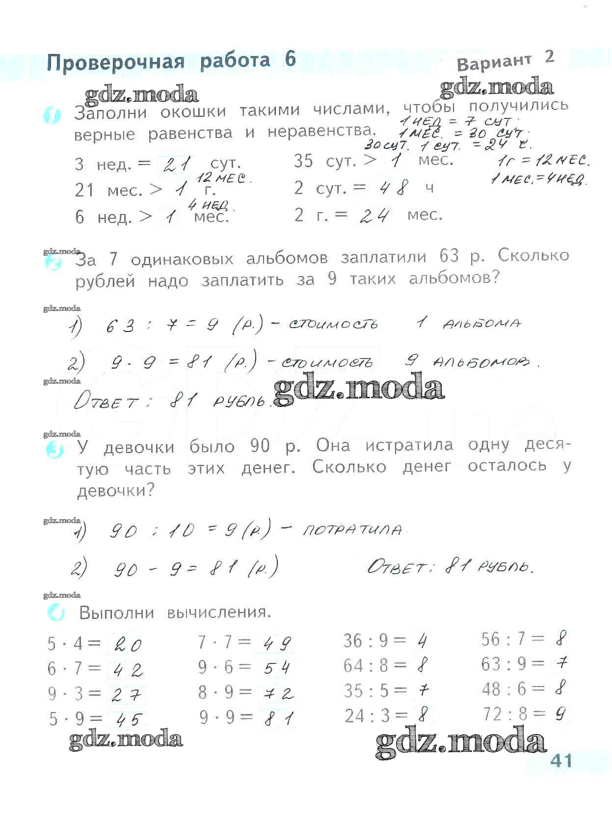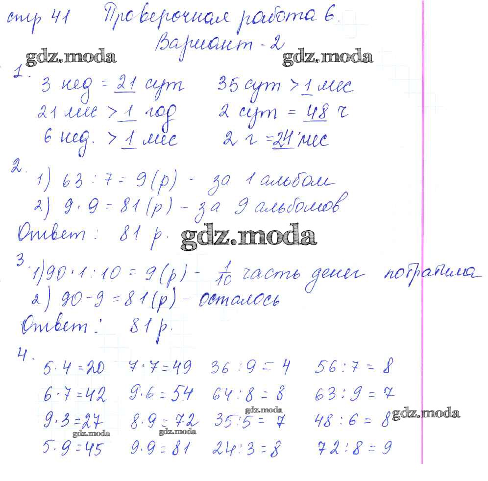 ОТВЕТ на задание № 41 Проверочные работы по Математике 3 класс Волкова Школа России