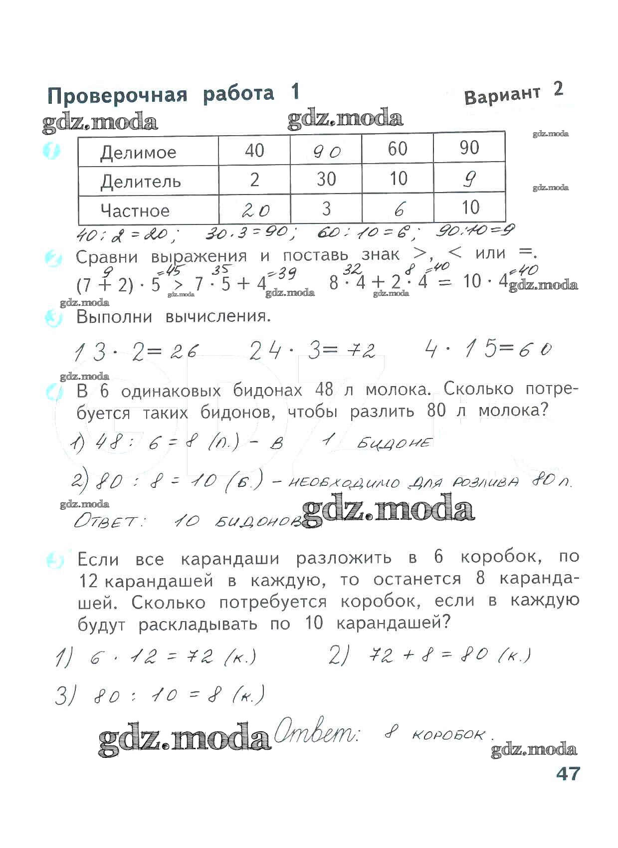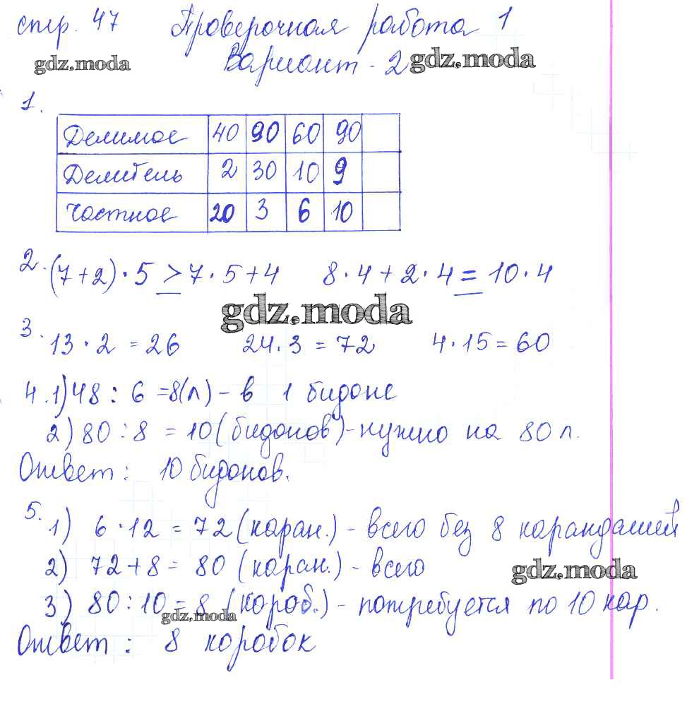 ОТВЕТ на задание № 47 Проверочные работы по Математике 3 класс Волкова Школа России