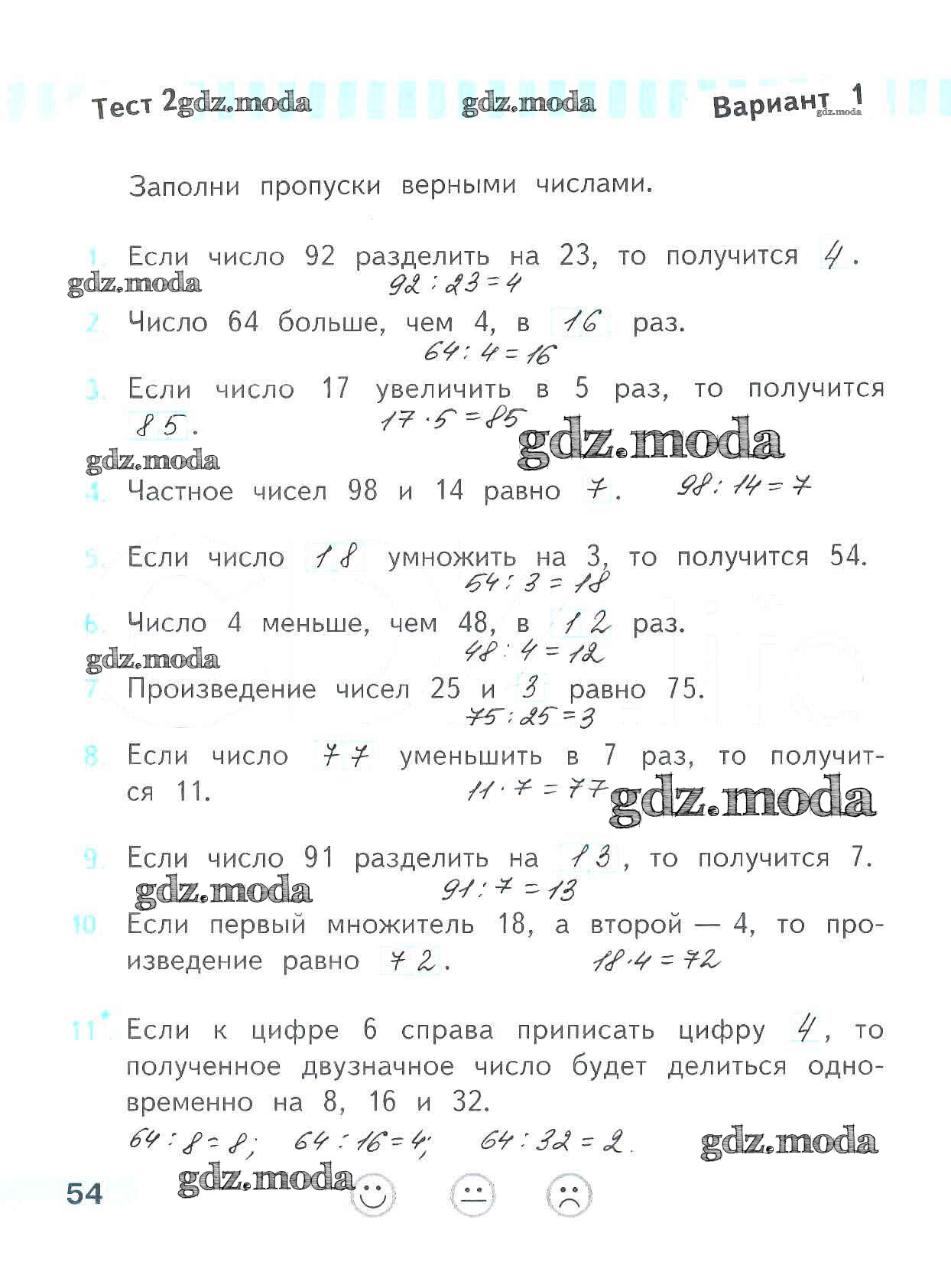 ОТВЕТ на задание № 54 Проверочные работы по Математике 3 класс Волкова Школа России